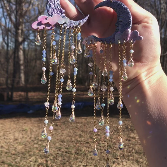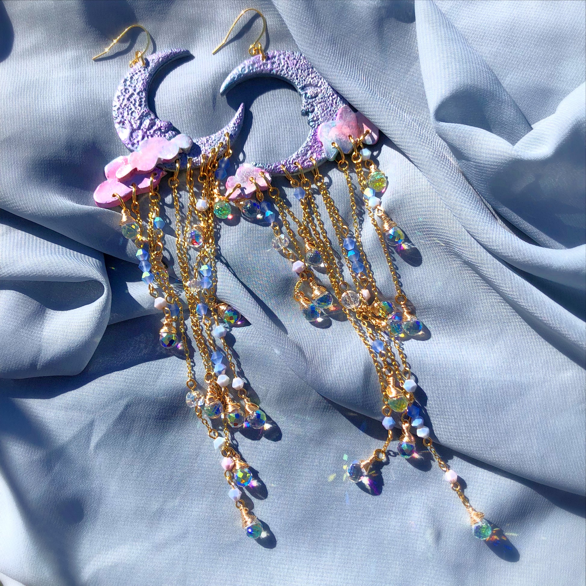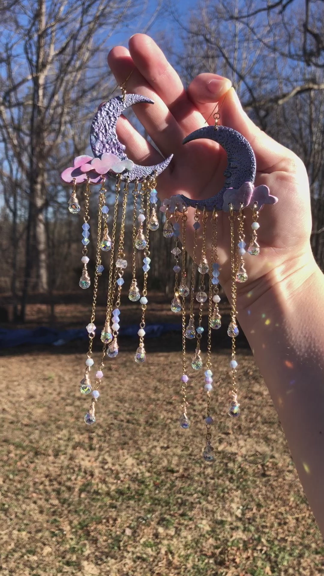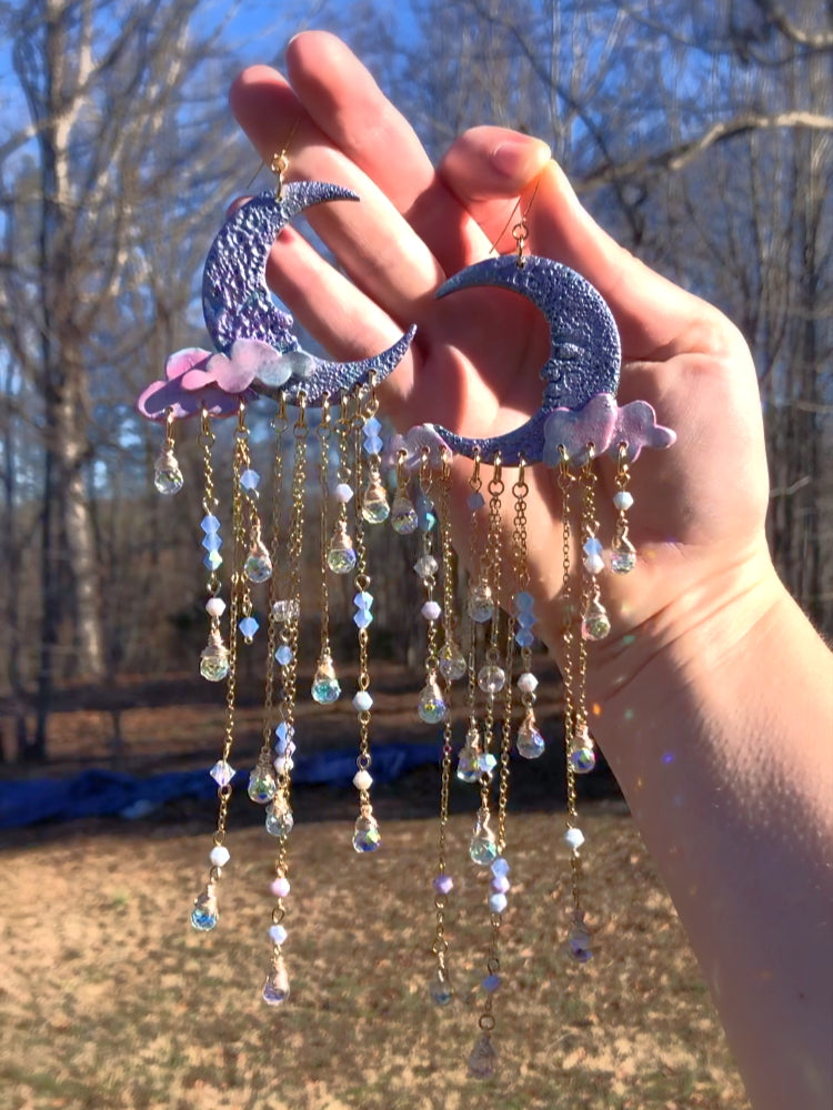 I hand painted these baddies with my new found technique (I probably didn’t invent but I feel like I invented myself)— of faux iridescence. Rainbow moons. Rainbow clouds. Boom.